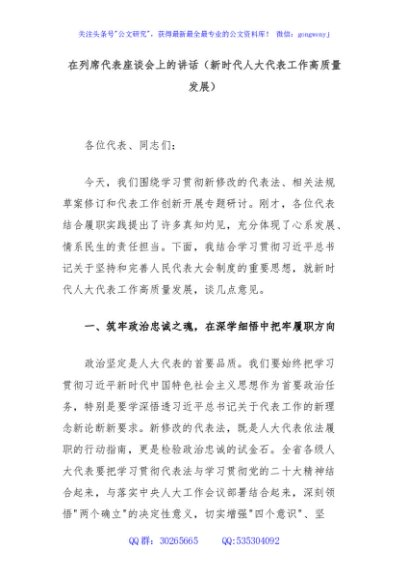 / 在列席代表座谈会上的讲话(新时代人大代表工作高质量发展)