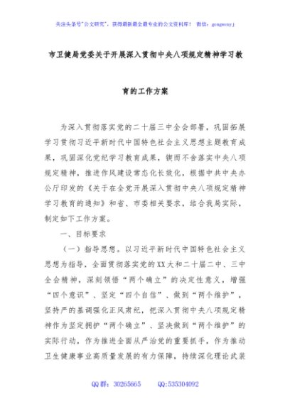 / 市卫健局党委关于开展深入贯彻中央八项规定精神学习教育的工作方案