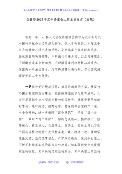 / 在县委2025年工作务虚会上的主旨发言(法院)