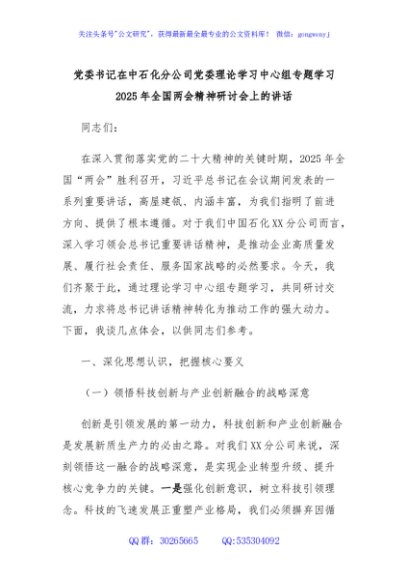 / 党委书记在中石化分公司党委理论学习中心组专题学习2025年全国两会精神研讨会上的讲话