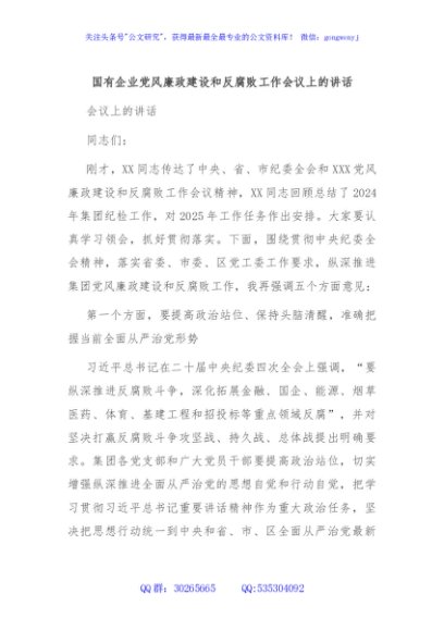 / 国有企业党风廉政建设和反腐败工作会议上的讲话