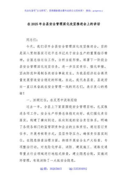 / 在2025年全县安全管理深化攻坚推进会上的讲话