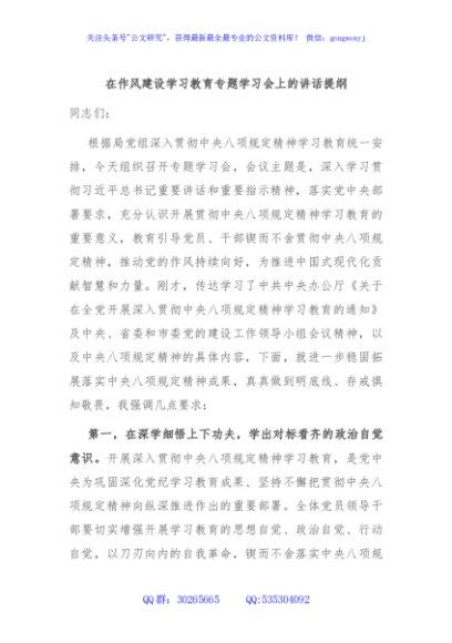 / 在作风建设学习教育专题学习会上的讲话提纲