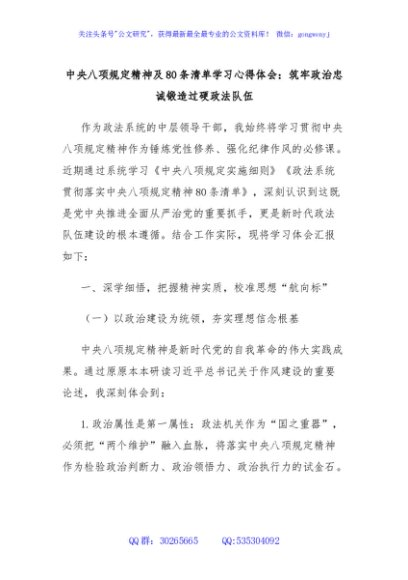 中央八项规定精神及80条清单学习心得体会:筑牢政治忠诚锻造过硬政法队伍