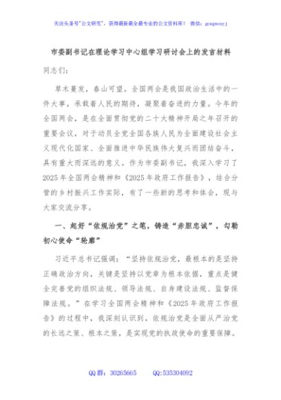 / 市委副书记在理论学习中心组学习研讨会上的发言材料