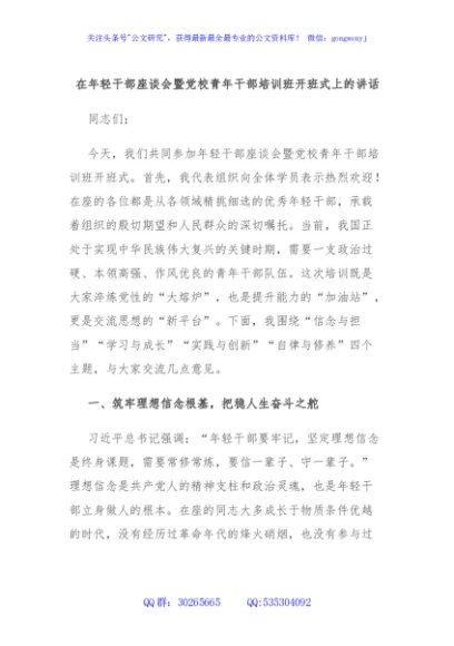 / 在年轻干部座谈会暨党校青年干部培训班开班式上的讲话