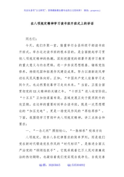 / 在八项规定精神学习读书班开班式上的讲话