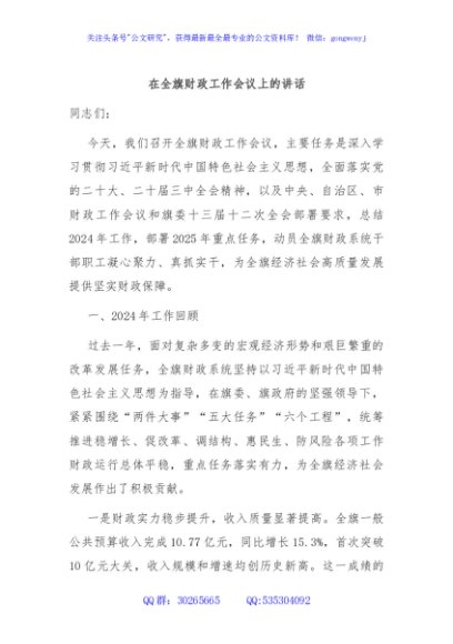 / 在全旗财政工作会议上的讲话