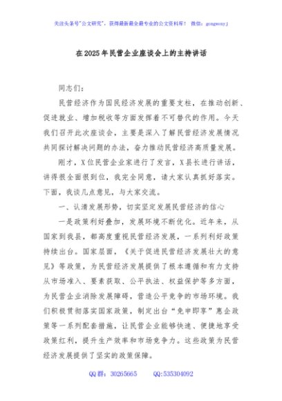 / 在2025年民营企业座谈会上的主持讲话