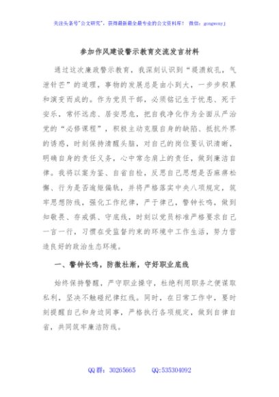 / 参加作风建设警示教育交流发言材料