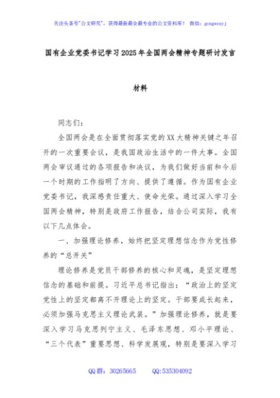 / 国有企业党委书记学习2025年全国两会精神专题研讨发言材料