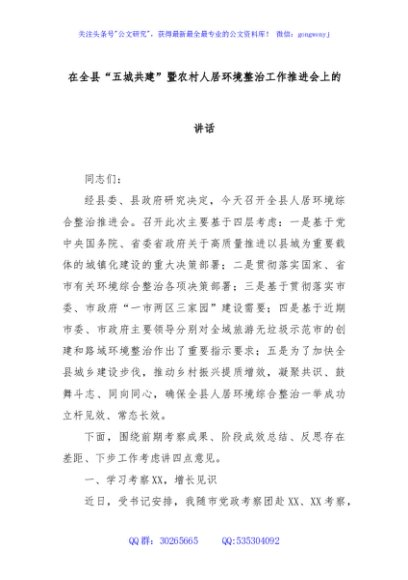 / 在全县“五城共建”暨农村人居环境整治工作推进会上的讲话