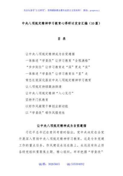 / (10篇)中央八项规定精神学习教育心得研讨发言汇编