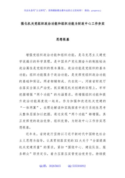 / 强化机关党组织政治功能和组织功能为财政中心工作夯实思想根基