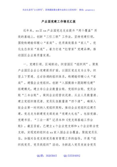 / 产业园党建工作情况汇报