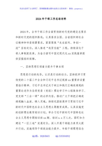 / 2024年干部工作总结材料