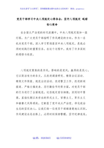 / 党员干部学习中央八项规定心得体会:坚守八项规定 砥砺初心使命