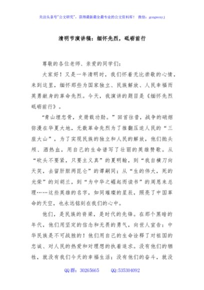 / 清明节演讲稿:缅怀先烈,砥砺前行
