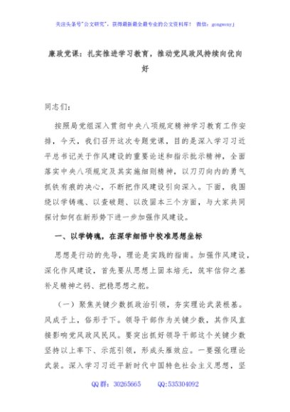 / 廉政党课:扎实推进学习教育,推动党风政风持续向优向好