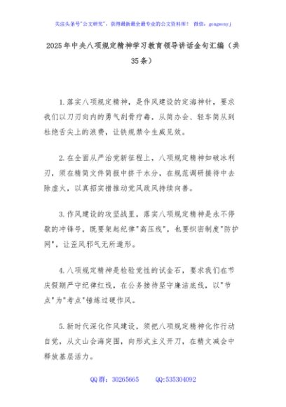 / 2025年中央八项规定精神学习教育领导讲话金句汇编(共35条)