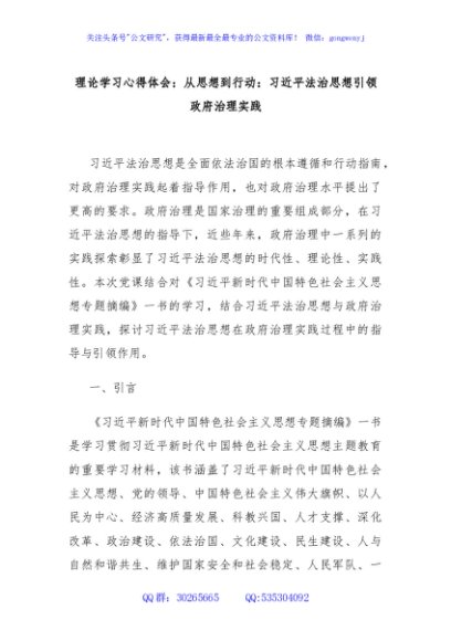 / 理论学习心得体会:从思想到行动:习近平法治思想引领政府治理实践