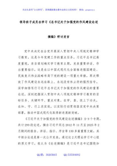 领导班子成员在学习《总书记关于加强党的作风建设论述摘编》研讨发言
