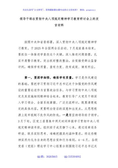 / 领导干部在贯彻中央八项规定精神学习教育研讨会上的发言材料