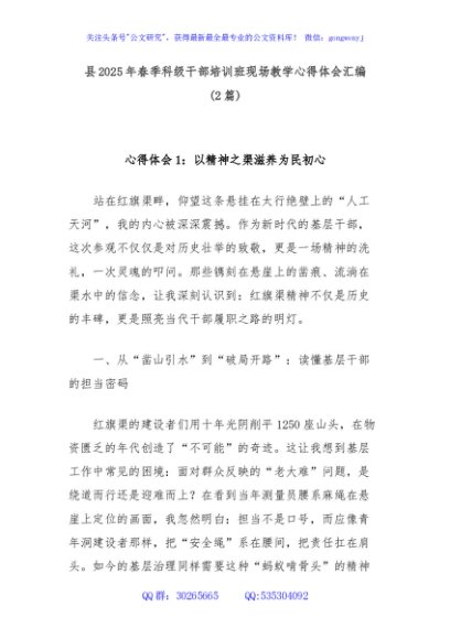 (2篇)县2025年春季科级干部培训班现场教学心得体会汇编