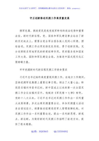 / 守正创新推动双拥工作高质量发展