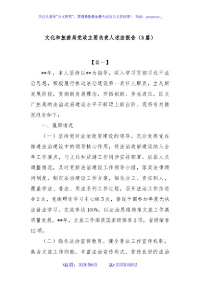 / (5篇)文化和旅游局党政主要负责人述法报告