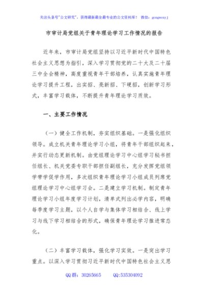 / 市审计局党组关于青年理论学习工作情况的报告