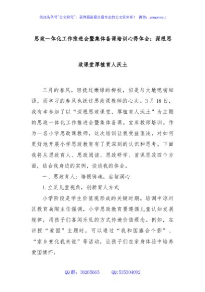 / 思政一体化工作推进会暨集体备课培训心得体会:深根思政课堂厚植育人沃土