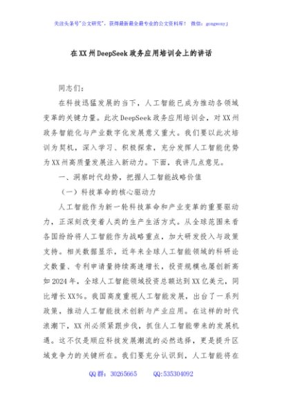 / 在XX州DeepSeek政务应用培训会上的讲话