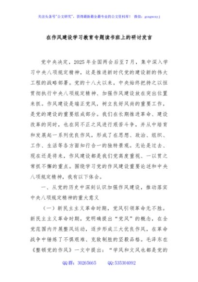 / 在作风建设学习教育专题读书班上的研讨发言