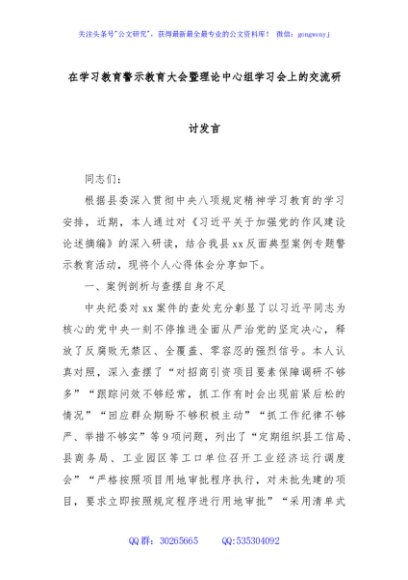 / 在学习教育警示教育大会暨理论中心组学习会上的交流研讨发言