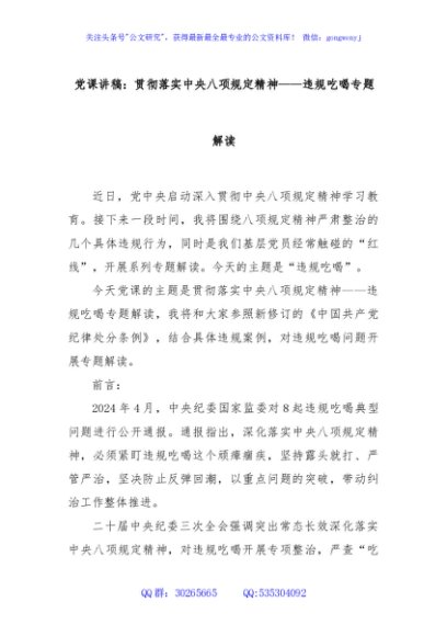 / 党课讲稿:贯彻落实中央八项规定精神——违规吃喝专题解读