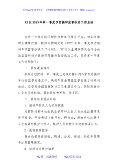 / XX区2025年第一季度预防接种监督执法工作总结