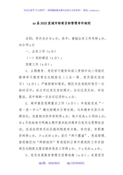 / xx县2025度城市街道目标管理考评细则