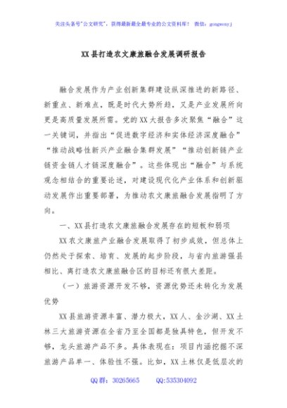 / XX县打造农文康旅融合发展调研报告