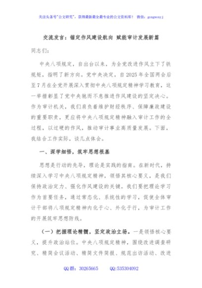 交流发言:锚定作风建设航向 赋能审计发展新篇