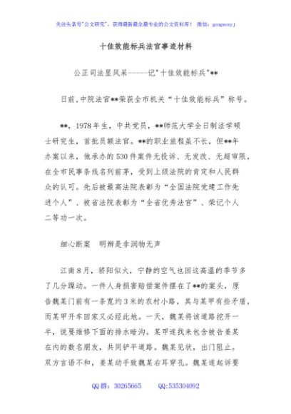 / 十佳效能标兵法官事迹材料