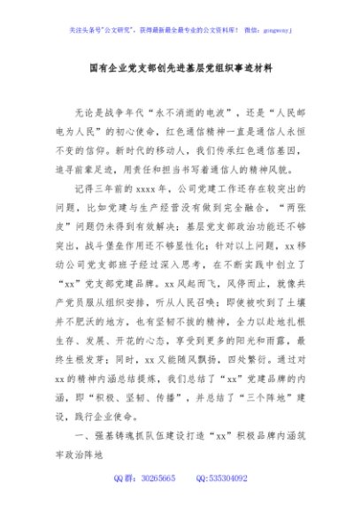 / 国有企业党支部创先进基层党组织事迹材料