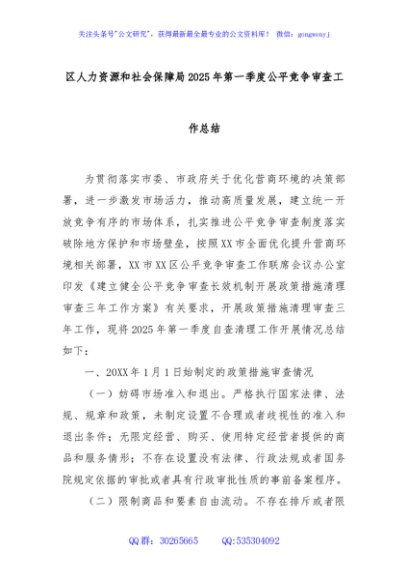 / 区人力资源和社会保障局2025年第一季度公平竞争审查工作总结