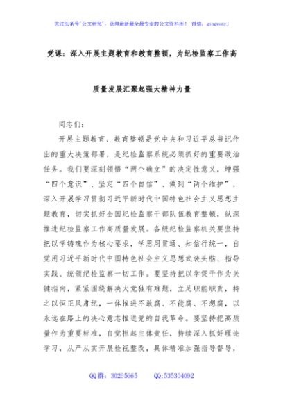 / 党课:深入开展主题教育和教育整顿,为纪检监察工作高质量发展汇聚起强大精神力量