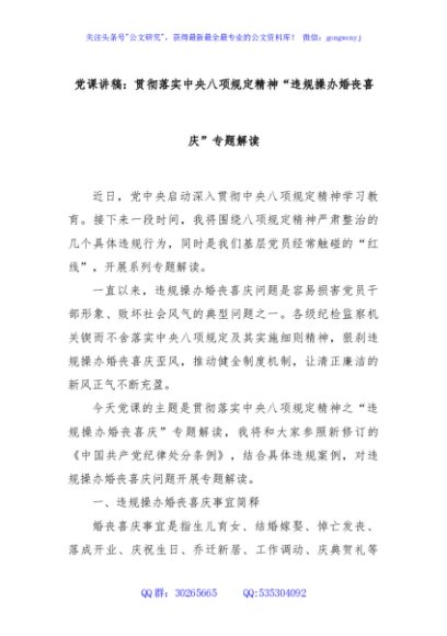 / 党课讲稿:贯彻落实中央八项规定精神“违规操办婚丧喜庆”专题解读