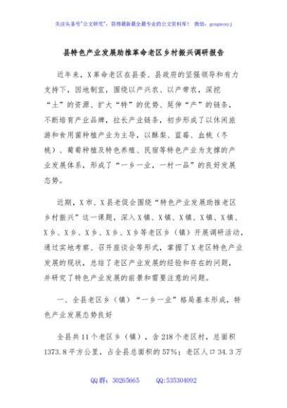 / 县特色产业发展助推革命老区乡村振兴调研报告