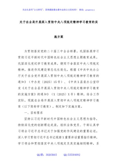 / 关于在全局开展深入贯彻中央八项规定精神学习教育的实施方案