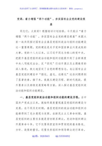 / 党课:着力增强“两个功能”,夯实国有企业党的建设根基