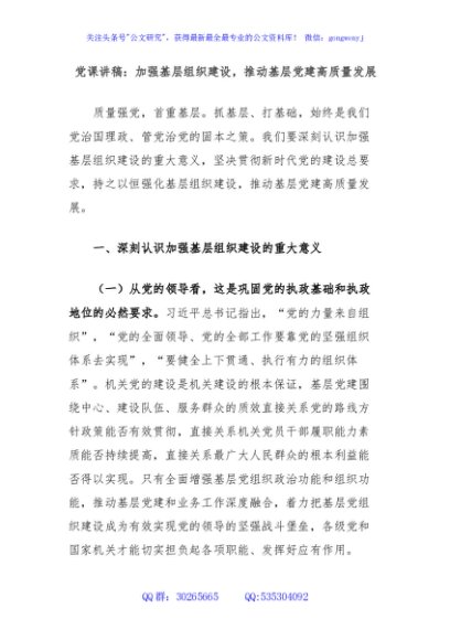 / 党课讲稿:加强基层组织建设,推动基层党建高质量发展