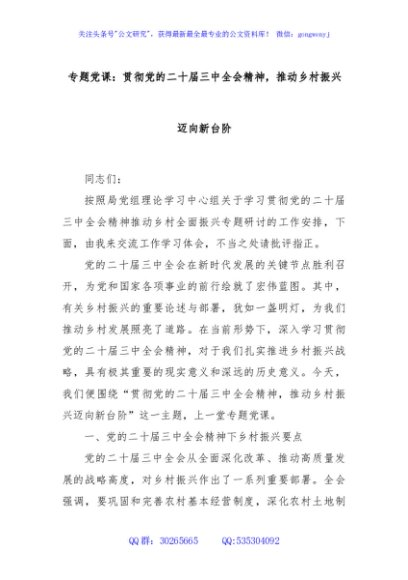 / 专题党课:贯彻党的二十届三中全会精神,推动乡村振兴迈向新台阶
